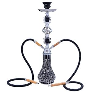 21″ Hookah Set – Premium 2 Hose Hookah Complete Set – Shisha Hookah Kit With Glass Vase Ceramic Bowl & Coal Tongs Ashtray (Black)