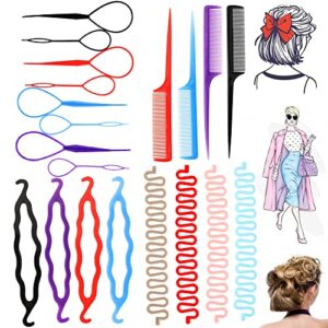 21 Piece Hair Design Accessories Set French Braid Tools Styling Tools Hair Design Contains: 4 coloured pointed-tail combs 8 hair pulling pins (4 large and 4 small) 4 hair pulling hooks 4 french braid tools (21 Piece Hair Braider Set)
