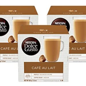 Dolce Gusto Nescafe Coffee Pods, Cafe Au Lait, 16 Count, Pack of 3