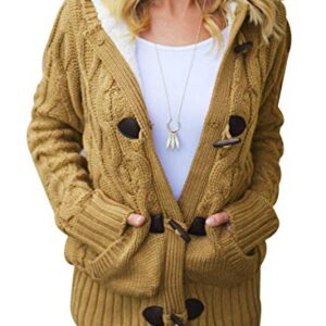 Dokotoo Womens 2022 Winter Hooded Cardigans Button Up Cable Knit Sweater Coat Outerwear with Pockets