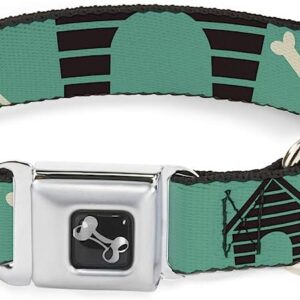 Dog Collar Seatbelt Buckle Dog House Bone Turquoise Brown 9 to 15 Inches 1.0 Inch Wide