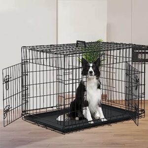 Dog Crate Dog Cage for Large Dogs Folding Mental Wire Dog Kennel Outdoor and Indoor with Double-Door Divider Panel Removable Tray and Handle