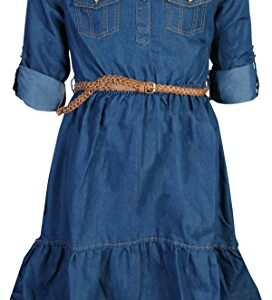 dollhouse Girls’ Dress – High-Low Belted Short Sleeve Chambray Denim Jean Dress