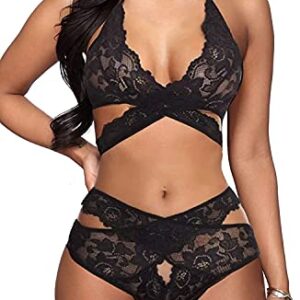 Donnalla Women Sexy Lingerie Set Two Piece Lace Bra and Panty Set Bralette Sleepwear