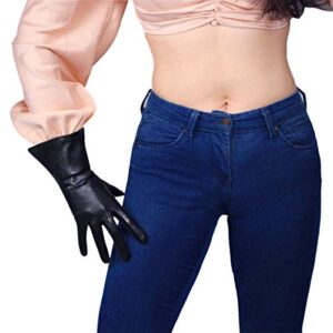 DooWay Black NAPPA Leather Gloves Imported Lambskin TOUCHSCREEN Long Arm Cuff 11-inch Wrist Warm Gauntlet Cosplay Party Finger Gloves