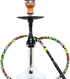 23” Hookah Set – Color Silicone Hose Premium Hookah Complete Set – Shisha Hookah Kit With Glass Vase Ceramic Bowl & Coal Tongs Ashtray