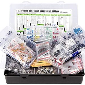 2200 pcs Electronic Component Assortment Kit, Capacitors, Resistors, Transistors, Inductors, Diodes, Potentiometer, IC, LED and PCB
