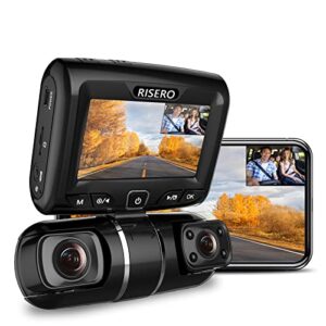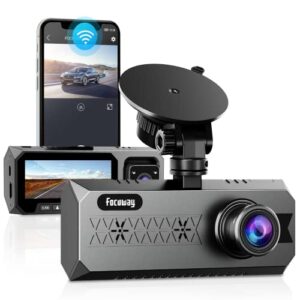 Dual Dash Cam WiFi APP FOCUWAY 1080P Dash Cam Front and Inside with IR Night Vision Dash Camera for Cars 3.16″ LCD Screen, G-Sensor, Parking Monitor, Type-C Port (SD Card not Included)