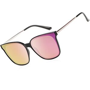 Duco Retro Round Sunglasses for Women Vintage Polarized Mirrored Sun Glasses Lightweight Metal Frame UV400 Protection W016