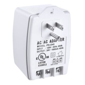 24VAC, 40 VA AC Transformer Plug in with PTC Fuse Compatible with Ring Nest Doorbell UL Listed