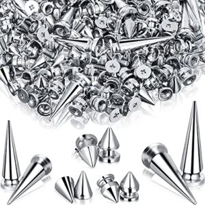 250 Pieces Cone Spikes Screwback Studs Spikes and Studs Multiple Sizes Cone Spikes Screwback Studs Rivets Punk Rock Bullet Rivets for DIY Clothing Leather Craft (Silver)
