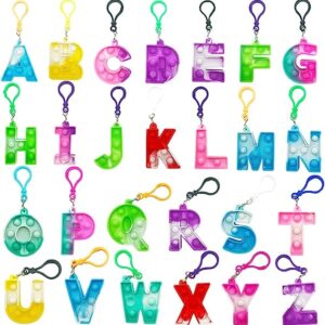 26 pcs Letters Keychain Push Pop Fidget Toys Set, Mini Pop Keychain, Fidget Keychain Silicone Push Bubble Sensory Toys, Fidget Popper Anti-Anxiety Stress Reliever Sensory Toys for Kids Adults