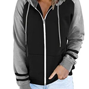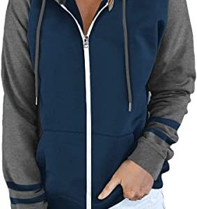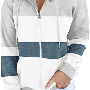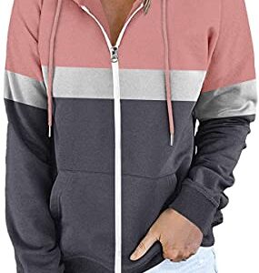 ETCYY Women Color Block Zip Up Hoodie Sweatshirt Long Sleeve Causal Drawstring Oversized Jacket with Pockets