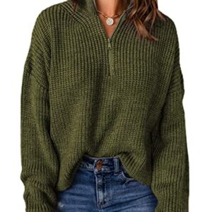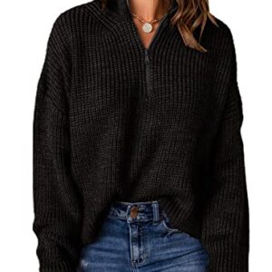 EVALESS Sweaters for Women Waffle Kint Long Sleeve 1/4 Zip Pullover Polo V Neck Sweater for Women