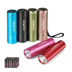 EverBrite 6-pack Mini LED Flashlight Set, Aluminum LED Handheld Torches with Lanyard, 18AAA Batteries included, for Kids Gift, Party Favor, Camping, Night Reading