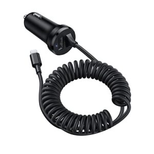 [Apple MFI C89 Certified] UNBREAKcable iPhone Car Charger 24W Fast Car Phone Charger Cigarette Lighter Adapter with Coiled Lightning Cable for iPhone 14 13 12 11 Pro Max Mini SE Xs XR X 8 7 Plus iPad