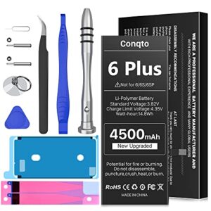 [4500mAh] Battery for iPhone 6 Plus, [2022 New Upgrade] Conqto Ultra-High Capacity 0 Cycle Replacement Battery for iPhone 6 Plus Model A1522, A1524, A1593 with Full Set Professional Repair Tool Kits