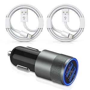 [Apple MFi Certified] iPhone Car Charger,3.4a Fast Charge Dual Port USB Cargador Carro Lighter Adapter USB Car Charger iPhone Metal Cigarette Lighter [2Pack] Lightning Cable for iPhone/iPad/Airpods