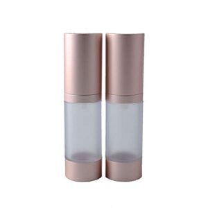 2PCS 15ml/0.5oz Empty Refillable Clear Plastic Airless Vacuum Pump Press Bottle Lotion Dispenser with Rose Gold Lid Portable Travel Cosmetic Container Jar Pot Vial for Emulsion Essence Serum