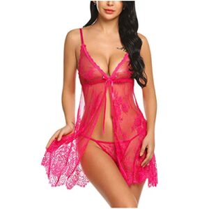 2pc Lingerie for Women for Sexy Naughty Play See-Through Florlal Lace Pajamas Mesh Bodysuit Babydoll Sleepwear
