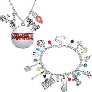 2PC Stranger Things Themed Charm Bracelet And Necklace Set Best Things for Kids Girls Teens Women Men for Collection Halloween Cosplay Gifts