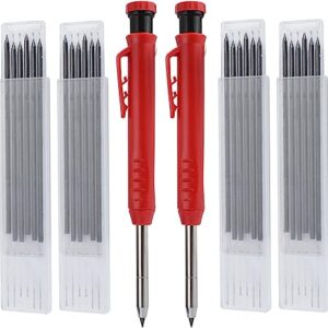 2Pcs Mechanical Carpenter Pencils and 24Pcs Refills, Construction Pencils with Sharpener, Solid Carpenter Pencils Set for Wood Marker Drawing Scriber Architect 2Pcs Mechanical Carpenter Pencils