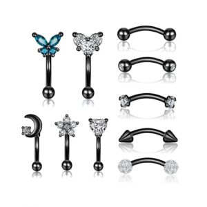 EVISPOL 10Pcs a Pack 16G Rook Curved Barbell Eyebrow Rings for Women Men 316L Surgical Steel Belly Lip Ring CZ Daith Cartilage Earrings Anti Tragus Forward Helix Body Piercing Jewelry