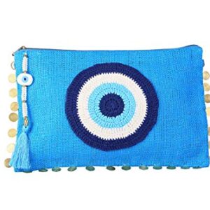 Evil Eye Handmade EGE Jute Clutch Purse Bag Eco Friendly Gift for Women Turquose Handheld Hessian Bag Natural Burlap Handbag