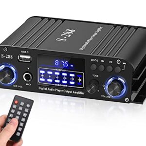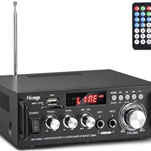 Facmogu 298A Wireless Bluetooth 5.0 Stereo Audio Amplifier, RMS 40Wx2 Max 300Wx2 Power Amp 2 Channel Stereo Receiver for Home Theater Speakers, Bass & Treble Control, USB/SD/RCA/MIC/FM in, Remote