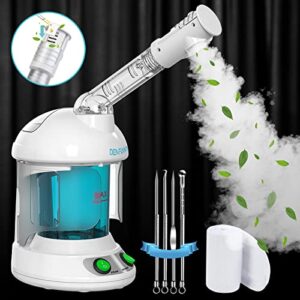 Facial Steamer – Nano Ionic Face Steamer with 360° Rotatable Sprayer, Portable Facial Steamer for Personal Care Use at Home or Salon, Bonus 1 Piece Spa Headband 4 Piece Stainless Steel Skin Kit