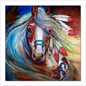 Faicai Art Fearless Indian War Horses Wall Art Canvas Prints Colorful Abstract Animal Paintings Modern HD Printed Oil Painting Home Decor Pictures for Living Room Bedroom Office Wooden Framed 16″x16″