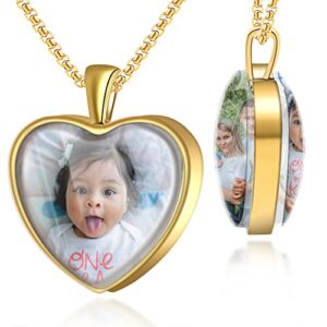 Fanery Sue Double-sides Picture Necklace Personalized Photo for Women Men, Custom Photo Pendant with Picture Inside, Memorial Engraved Necklace with Solid Protector