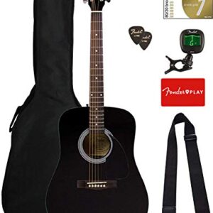 Fender FA-115 Dreadnought Acoustic Guitar – Black Bundle with Gig Bag, Tuner, Strings, Strap, and Picks