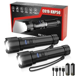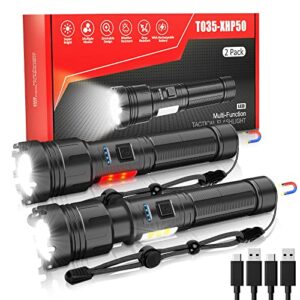Flashlight High Lumens Rechargeable, 10000 Lumen Led Flashlights XHP50.2 USB Super Bright Flash Light, High Powered Handheld Magnetic Flashlights for Emergencies, 7 Modes, Waterproof, Zoomable, 2 Pack