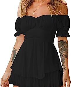 Fixmatti Women Boho Romper Off Shoulder Ruffle Chiffon Shorts Jumpsuit Playsuits