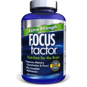 Focus Factor Extra Strength, 120 Count – Brain Supplement for Memory, Concentration and Focus – Complete Multivitamin with DMAE, Vitamin D, DHA – Trusted Brain Health Supplement – Brain Vitamins