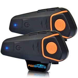 Fodsports BT-S2 Motorcycle Bluetooth intercom Off-Road Motorbike Intercom Helmet Bluetooth Headset 1000M Bluetooth Motorcycle Communication System, Hands-Free, FM, MP3 (2 Pack Hard mic)