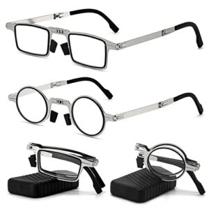 Foldable Reading Glasses Portable Light Folding Unisex Anti-Blue Glasses Round Rectangle Eyewear Frame Glasses Case Included