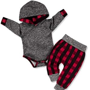 Fommy Newborn Baby Boy Clothes Plaid Letter Print Long Sleeve Hoodies + Long Pants 2PCS Fall Winter Outfits Set
