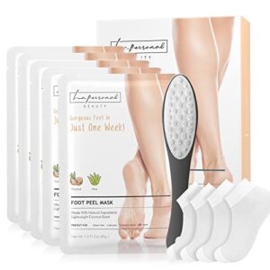 Foot Peel Mask (5 Pairs) – 3-in-1 Foot Peeling Mask + Foot Scrubber + Socks, Foot Care Kit for Cracked Heels, Callus Remover for Feet, Natural Exfoliating for Dead Skin, Foot Peel for Women & Men
