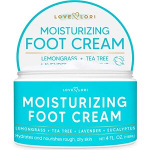 Foot Cream for Dry Cracked Feet 4 oz. Foot Lotion by Love Lori – Foot Moisturizer & Heel Cream – Foot Repair Cream for Cracked Feet Treatment w/ Tea Tea Oil & Lemongrass – Foot Care for Women