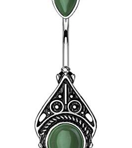 Forbidden Body Jewelry Surgical Steel Tribal Vintage Filigree Belly Button Ring with Faux Semi-Precious Stones