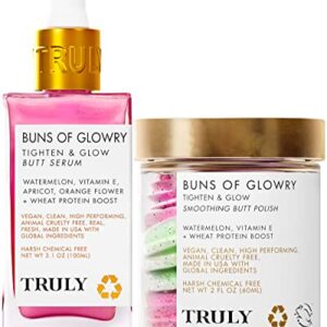 For Your Buns bum care bundle by truly beauty products – body scrubs for women exfoliation polish and cellulite remover – Comes with Buns of Glowry body polish and skin tightening cream serum