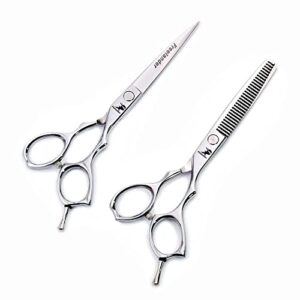 Freelander 6.0 inch Japan 440C Stainless Steel Barber Hairdressing Cutting Shears/Scissor and Thinning/Blending Scissors for Professional Hairdresser (Silver-6.0)