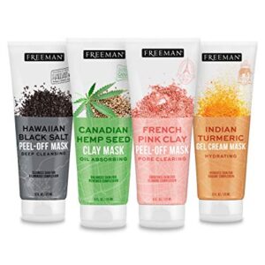 Freeman Facial Mask Variety Bundle for Skin Care, Peel Off Face Masks with Clay + Dead Sea Minerals 6 fl oz, 4 Pack