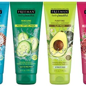 Freeman Facial Mask Variety Pack: Oil Absorbing and Anti Stress Clay, Detoxifying Charcoal Mud, Clearing Peel Off, Hydrating Gel Cream Beauty Face Masks, 6 count…