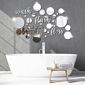 30 Pieces Bathroom Wall Decals Wash Flush Brush Floss Stickers 3D Round Mirrors Wall Art Decal Self Adhesive DIY Acrylic Mirror Decor Beautiful Art Words Decor for Home Bedroom Living Room (Silver)