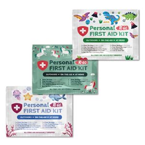 3 x Portable Travel Size First Aid Kit | Perfect for Home, Office, Car, School, Business, Travel, Hiking, Hunting, and Outdoors | Individually Wrapped (Under The Sea / Unicorns / Dinosaurs)
