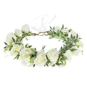 Funsveta Floral Headpiece Garland Halo Maternity Photo Shoot Flower Crown Eucalyptus Leave Headband Wedding Headpiece (Green Leaf and White)