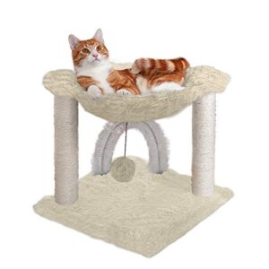 Furhaven Tiger Tough Small Cat Tree Plush Hammock Playground w/ Toys & Self-Grooming Brush – Cream, One Size